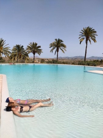 Imagina esto: fuera hace frío, quizá hasta llueve, nevar no, esto es Murcia. Tú estás metido en una piscina termal de 600 metros cuadrados con agua entre 30 y 35 grados, al aire libre, rodeado de nada más que cielo, palmeras y montañas. El vapor sube formando nubes que se confunden con el aire helado. Es una experiencia casi mística, de esas que te hacen pensar "esto es lo que necesitaba sin saber que lo necesitaba". El balneario tiene dos grandes piscinas termales al exterior abiertas todo el año –una de ellas calificada como playa termal– así que mientras el resto del país se refugia bajo mantas, tú puedes estar flotando como un bendito bajo las estrellas.